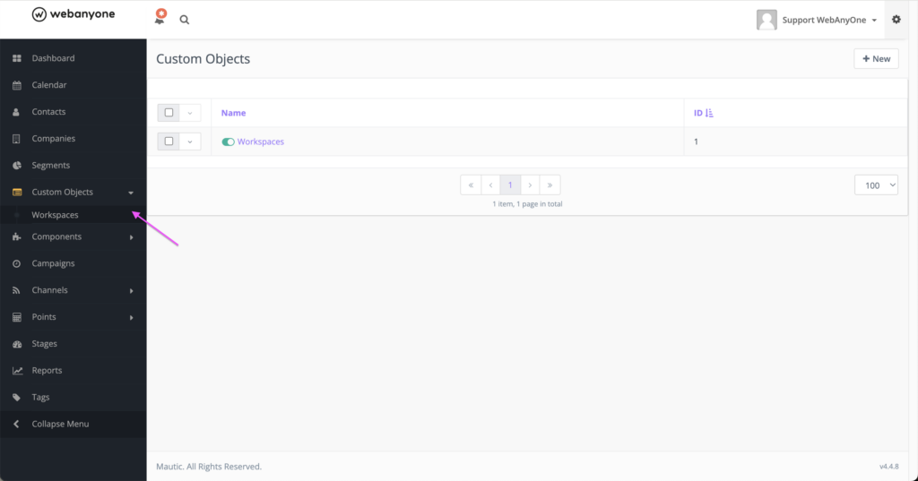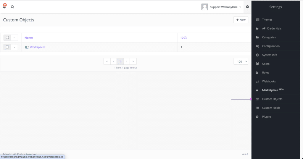 - ajout de “Custom Objects” dans le bandeau à droite